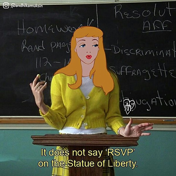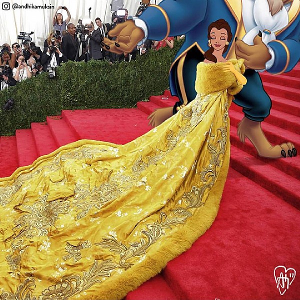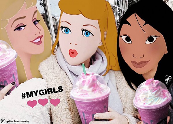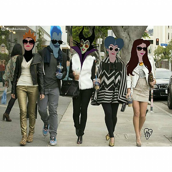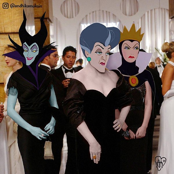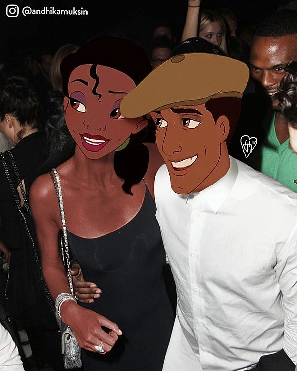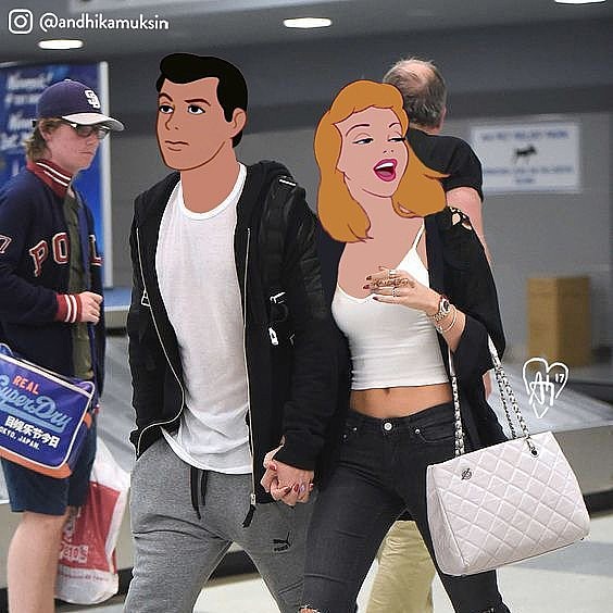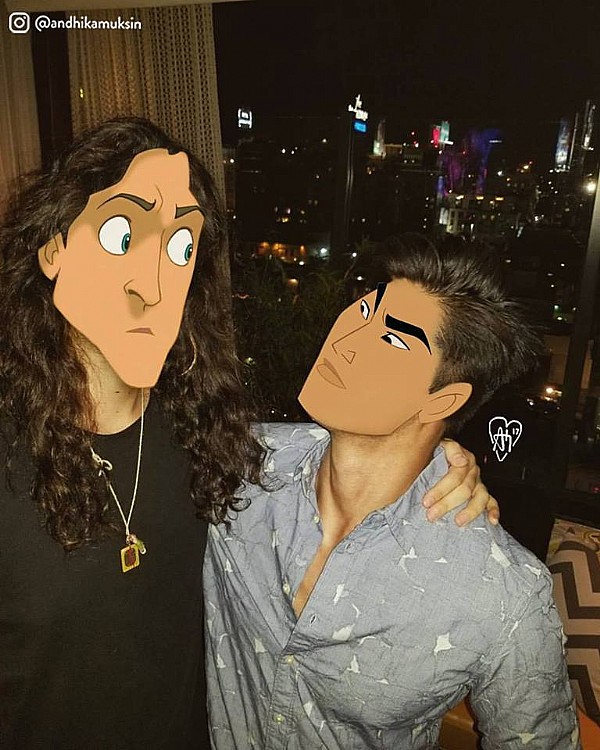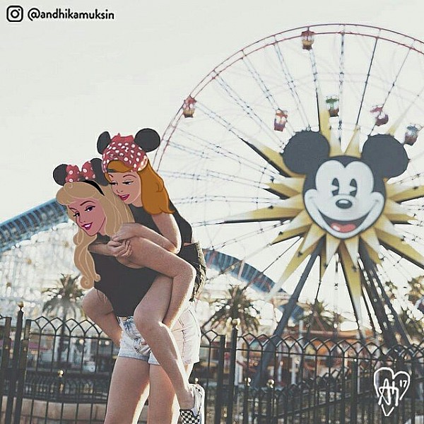 不同于重新繪畫整個場景和角色,其實 Andhika 只是把現代照片人物中的頭部換成了迪士尼動畫里的角色們。