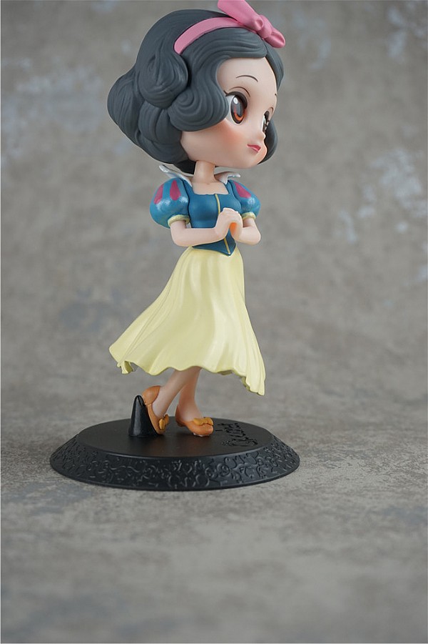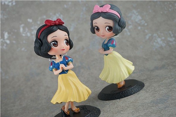 在炎炎夏日里終于等來了白雪公主!此作是流行在歐洲大陸多年的民間童話故事,后被格林兄弟編入童話書,才得以在全世界流傳開來。雖然最近十幾年間,對白雪公主的故事有了更多版本,和一些令人驚悚解讀,但這并不影響白雪公主給兒童留給下善良美麗的印象。 回憶過童年之后,就開開始測評吧!先看看外包裝。正色版的包裝是森林花叢為背景,并配上鮮艷誘人的紅蘋果,就差七個小矮人站一圈了~ 異色版的包裝上出現了魔鏡,映出白雪公主的背影,小細節做的很到位。很想對著鏡子問,魔鏡,魔鏡,誰是世界上最美麗的人? 下面拆開看看實物!左邊是異色版白雪公主,右邊是正色版白雪公主。和其它公主一樣,異色版飽和度降低,有種站立在晨霧中的朦朧感。 在童話故事中,明確介紹了白雪公主的外貌,發如烏木,膚似白雪,唇紅如血。這款手辦很好的讓顏色呈現了出來,又沒有過度。發色烏黑,雕刻優美,發尾的處理尤其好,一個卷發包包頭就立體呈現了。皮膚也沒有過白,還是膚色的樣子,臉頰處的紅暈更是顯得嬌羞可愛。 \u00A0 軀干部分有一個扭動,很好的展現出了身體的線條感,腳步動作設計巧妙,頗具動感。裙擺也隨著飄擺,十分生動。值得一提的是,裙子里面并不是貝兒公主那般堆積褶皺,而是設計了一個長款的南瓜褲,很符合白雪公主的個性。【貝兒公主測評鏈接】 下面是異色版的白雪公主。總覺得蝴蝶結換成粉色不太襯她的頭發。 兩款放在一起的比較就更加明顯了,正色版的顏色更抓人一些。 以上就是白雪公主的測評~補充一些關于白雪公主的小趣事,迪士尼電影版的形象原型師美國演員珍妮.蓋諾,發型也是后卷的包包頭。白雪公主的也是歷史上第一部動畫長篇,迪士尼耗時3年才公開放映。