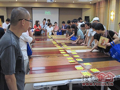 大家在門口進行簽到和領取禮品包一個。來到銷售中心,現(xiàn)場陳列了此次團購優(yōu)惠的部分地板樣件,團購價格在現(xiàn)場公布。“準客戶”們在銷售中心自由咨詢,工作人員細心解答,場面十分火爆。
