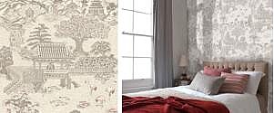 ??有人物場景特色的朱伊紋樣的呈現(xiàn),打造質(zhì)樸禪意具有日本特色的建筑院落,花木扶疏,景亭樓臺,一派和煦景象,傳遞一種平和和純樸回歸內(nèi)心的力量。顏色上特有的京都自然紅,給無彩色古老建筑增添了特有的生機(jī)和活力。