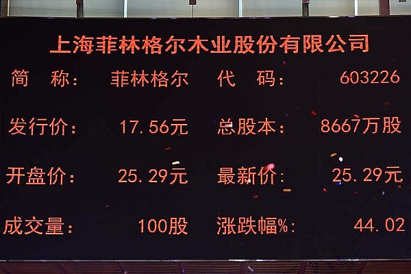 原標(biāo)題:地板商菲林格爾在滬上市 市值高達(dá)21.92億元