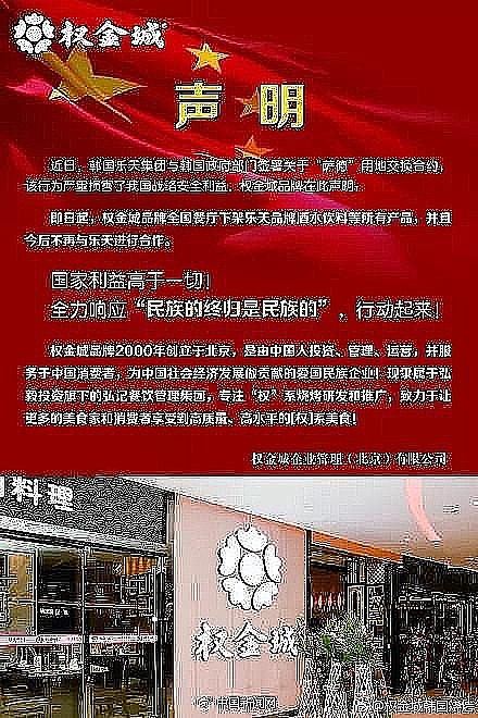 最近,樂天集團與韓國防部簽署“薩德”換地協(xié)議,引發(fā)了中國民眾抗議,尤其隨著“薩德”裝備抵韓,民間對韓的不滿情緒也日益強烈。對此,國內(nèi)一些與“韓國元素”有關(guān)的企業(yè)發(fā)出聲明,明確自己與“樂天”無關(guān)。