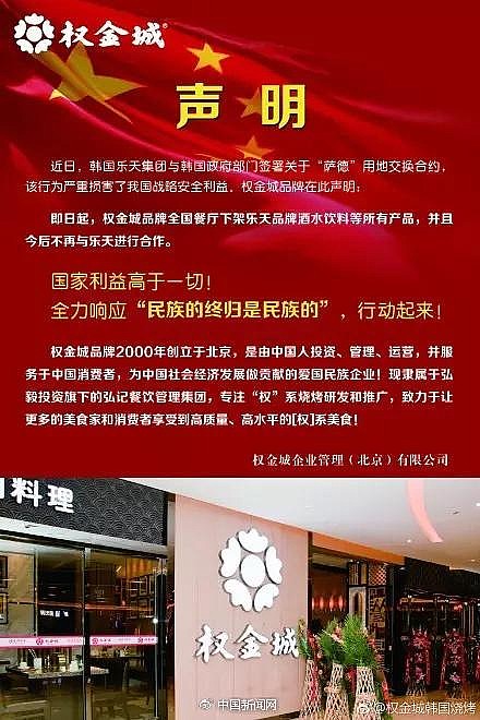 (原標題:漢拿山、權金城等餐廳紛紛發(fā)聲明:我們百分百是中國的)