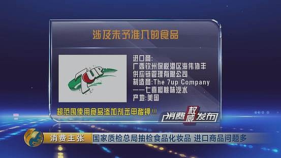一批次從美國進(jìn)口的七喜櫻桃味汽水,超范圍使用食品添加劑苯甲酸鉀。