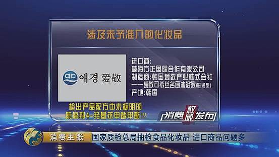 兩批次從韓國進(jìn)口的愛敬可希絲名畫沐浴液,檢出了產(chǎn)品配方中未標(biāo)明的防腐劑4-羥基苯甲酸甲酯。