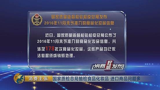 日前,國家質(zhì)量監(jiān)督檢驗檢疫總局公布了2016年11月未予準(zhǔn)入的食品化妝品信息,共涉及178批次食品化妝品。這些產(chǎn)品均已依法做退貨或銷毀處理。