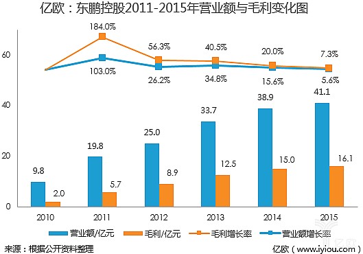 在2014年到2015年期間,盡管行業(yè)整體行業(yè)面臨著經(jīng)濟(jì)下行環(huán)境的壓迫、國家對購買政策的收緊等不利因素,但東鵬在營業(yè)額和毛利方面均獲得了增長,這與其不斷堅持推出新產(chǎn)品、積極營銷、擁抱轉(zhuǎn)型的力度密切相關(guān)。
