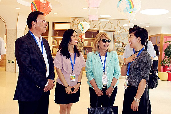 埃菲·施滕茨勒先生的夫人特別喜愛(ài)孩子,她是以色列的知名教育家,在教育領(lǐng)域有很多著作與研究。她跟史總一見(jiàn)如故,“我們都是喜愛(ài)孩子的人”,正是因?yàn)閷?duì)于孩子的愛(ài),讓教育跨越國(guó)度。在繪本館,史總和埃菲·施滕茨勒先生的夫人看到孩子們正在上繪本閱讀課,自然地融入到孩子中間,跟孩子們一起玩起了繪本游戲。