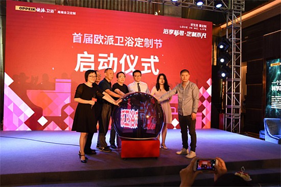 在場(chǎng)嘉賓共同按壓?jiǎn)?dòng)球,歐派衛(wèi)浴定制節(jié)正式拉開帷幕