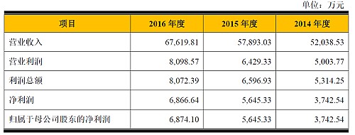 據(jù)招股說明書顯示,公司2014-2016年度合并利潤表如下: