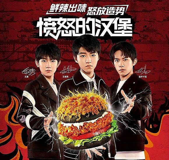 此次簽下TFBOYS,肯德基也隨即同期推出新品“憤怒的漢堡”——這是一款帶有肉松的漢堡,你知道的,肉松、芝士與小龍蝦已經(jīng)成為中國(guó)市場(chǎng)的“網(wǎng)紅保證”。必勝客的比薩上已經(jīng)灑滿了小龍蝦,而這次肯德基又把肉松加進(jìn)自己的漢堡中。配合TFBOYS的宣傳,肯德基似乎也想把這款漢堡作為當(dāng)季的主打產(chǎn)品。