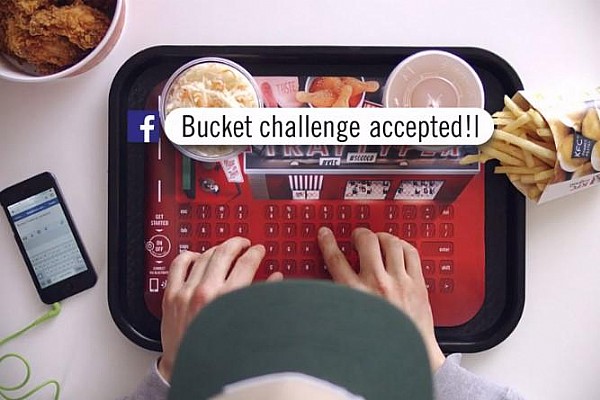 坐著哆啦 A 夢(mèng)的時(shí)光機(jī)來到2015年,德國的肯德基推出了一款藍(lán)牙鍵盤,咋一看是不是以為是托盤墊紙?