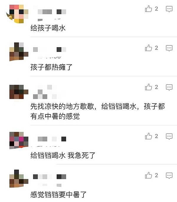 而在直播過程中,從畫面里可以看到鐺鐺幾乎熱癱,汗水已經將額頭上的頭發打濕,兩個眼睛都睜不開。網友紛紛評論譴責黃毅清不顧女兒只顧直播。