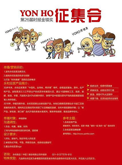 永和豆?jié){伴隨用戶消費升級,在傳承傳統匠心的前提基礎上,推陳出新,不斷研發(fā)新產品,發(fā)展新技術,追求時尚創(chuàng)新,為消費者呈現更豐富、更有營養(yǎng)的健康食品!也希望廣大參與永和豆?jié){形象創(chuàng)意設計的小伙伴們大膽開動你們的腦洞,將永和豆?jié){“匠心傳承