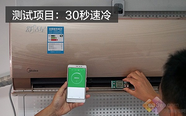 首先,在30秒速冷測試中,盡管房間內初始溫度高達30℃,美的舒適星、制冷王空調均順利完成30秒內將室溫從30℃將至26℃以下的測試,且持續平穩運行;