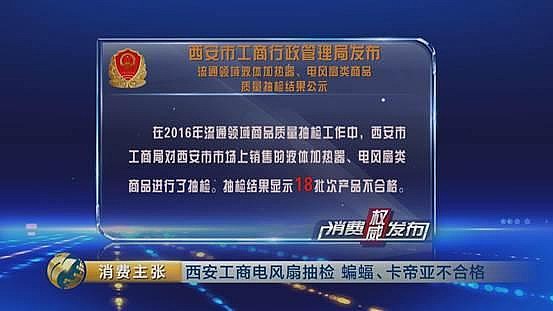 近期,西安市工商局對(duì)液體加熱器和電風(fēng)扇類商品進(jìn)行了抽檢,18批次產(chǎn)品不合格。