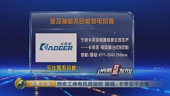 寧波卡帝亞電器有限公司生產(chǎn)的卡帝亞電風(fēng)扇,元件等不合格。