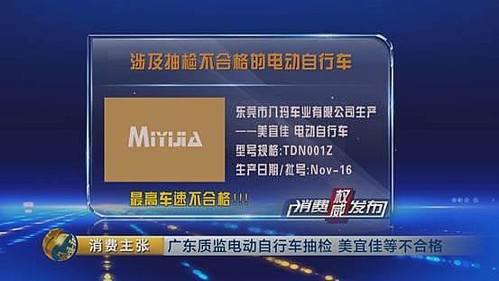 其中,東莞市八瑪車業(yè)有限公司生產(chǎn)的美宜佳電動(dòng)自行車,最高車速不合格。