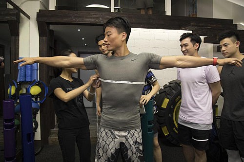 ??現(xiàn)場測量男生的胸圍和臂圍,最大尺寸者獲勝。