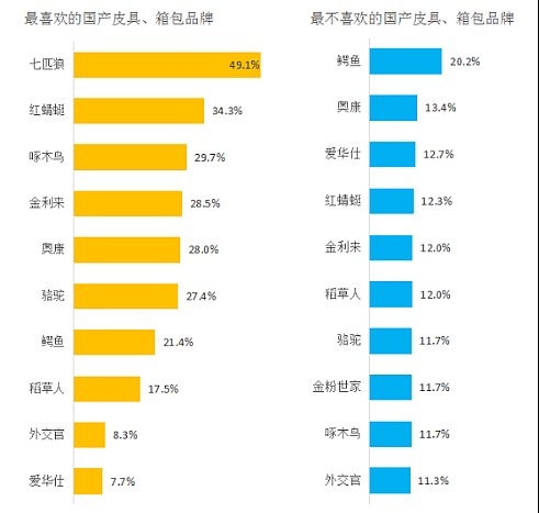 中國消費者最喜歡的、最不喜歡的國產(chǎn)皮具箱包品牌
