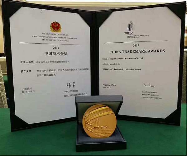 日前,由國家工商總局、世界知識(shí)產(chǎn)權(quán)組織聯(lián)合舉辦的中國商標(biāo)金獎(jiǎng)?lì)C獎(jiǎng)大會(huì)在江蘇省揚(yáng)州市召開,內(nèi)蒙古鄂爾多斯資源股份有限公司榮獲商標(biāo)運(yùn)用獎(jiǎng)。