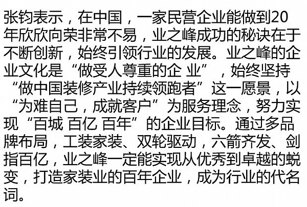 業(yè)之峰裝飾集團(tuán)董事長(zhǎng)張鈞先生致辭