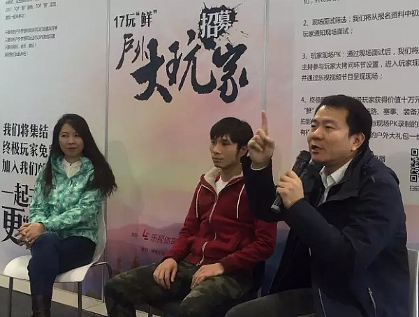 在國家會議中心正在召開的ISPO BEIJING展會2.216思凱樂展廳里,眾多玩家與媒體、嘉賓聚焦節(jié)目,節(jié)目將分為“戶外大玩家”招募、“玩家”現(xiàn)場PK、“玩家”線路直播三個階段呈現(xiàn),啟動發(fā)布現(xiàn)場,“戶外大玩家”招募活動正式開啟。