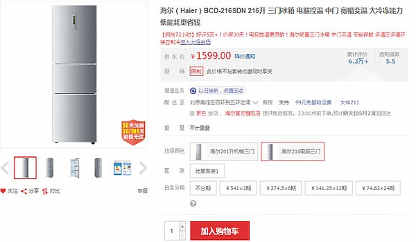 編輯點評:海爾的這款三門冰箱,不俗的外觀設(shè)計,出眾的制冷效果,電腦控溫,保鮮持久,各方面表現(xiàn)都令人滿意,京東商城促銷僅為1599元的售價,性價比十足,推薦選購,喜歡的朋友趕快行動起來吧!