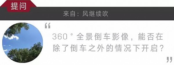 360°全景倒車影像這項功能可以讓駕駛員在倒車時獲取“上帝視角”,借助此功能,倒車也可以變成一件好玩的事。題主看來也是對此項功能頗有興趣,那么是否可以在倒車之外的狀態(tài)下開啟360°全景影像?馬上解答: