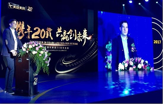 ▲合作伙伴AMEFA公司代表在20周年大會致辭