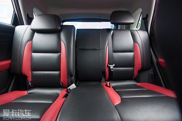 進入車內,內飾顏色的搭配個性化十足,明顯的黑紅雙色設計高端時尚,讓人眼前一亮。真皮方向盤集成了諸多控制按鍵,高端感瞬間來襲!真皮的材質帶有打孔設計,大氣同時又不失運動感。