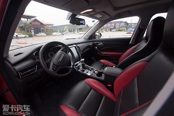 儀表盤采用雙炮筒的設計,頗有高端跑車范;更為讓人驚艷的是門把手的設計,紅色皮質讓人瞬間驚呼,超跑范瞬間爆表,將時下年輕人的個性表現到了極致!點睛之筆在于CS9采用的一體式的座椅,這種造型有點像賽車的桶椅,在同級競品中高端感不言而喻。總的來說,進入獵豹CS9的駕駛室,甚至會產生置身“超跑”之內的體驗。