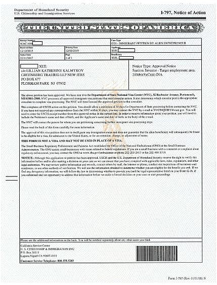 世貿通未成年人客戶做主申移民美國I-526獲批信(申請年齡僅16歲)