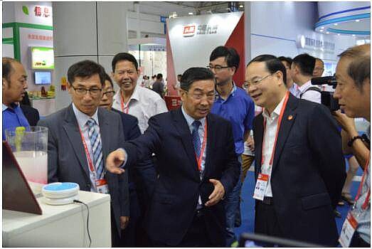 在與會(huì)巡展活動(dòng)中,福建省常務(wù)副省長(zhǎng)、省委常委張志南(右一)來(lái)到金源泉科技公司的展位聽(tīng)取了金源泉公司董事長(zhǎng)徐道華對(duì)新技術(shù)產(chǎn)品的介紹,并指出:產(chǎn)品的科技創(chuàng)新、把向營(yíng)養(yǎng)與保健 ,實(shí)現(xiàn)綠色健康,將造福于民生 。