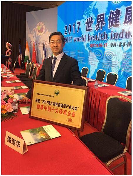 圖為:金源泉科技有限公司獲得“2017健康中國(guó)十大領(lǐng)軍企業(yè)“的殊榮。