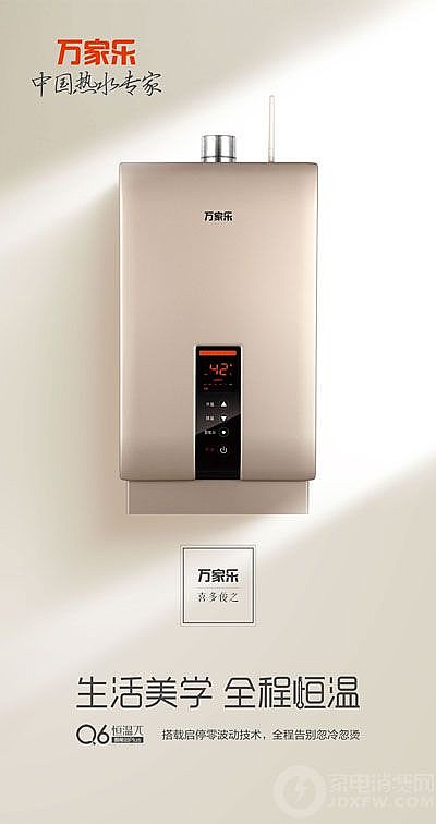 2017年3月10日,在中國家電及消費(fèi)電子博覽會(huì)(AWE)上,熱水器知名品牌萬家樂聯(lián)合京東舉行了“極致體驗(yàn) 巔峰再現(xiàn)-萬家樂Q6燃?xì)鉄崴餍缕钒l(fā)布會(huì)”,推出繼“零冷水”X7中央熱水之后的又一重磅產(chǎn)品,搭載“啟停零波動(dòng)”熱水技術(shù)等66項(xiàng)原創(chuàng)核心專利技術(shù)的Q6恒溫π燃?xì)鉄崴鳌?/p>