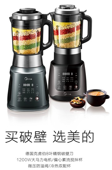 2017年8月1日,美的生活電器與京東家電在京東總部大樓聯合舉行“科技美的 品質京東”美的京東秋季新品發布會,京東集團副總裁閆小兵和美的生活電器事業部總經理李國林出席發布會剪彩儀式,美的生活電器一舉發布了2個系列五款高端破壁機。包括“精萃系列”破壁機鋼鐵俠BL1206A和小鋼炮BL12K31和“超能系列”破壁機Power701、702、703;同時西班牙著名米其林三星大廚空降現場,為觀眾呈現了一場科技與美食交融的食色盛宴。