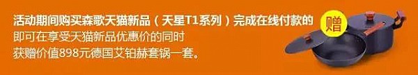 (3)活動(dòng)期間,森歌天貓旗艦店天星蒸箱款T1Z,原價(jià)14620元,活動(dòng)僅售10800元。