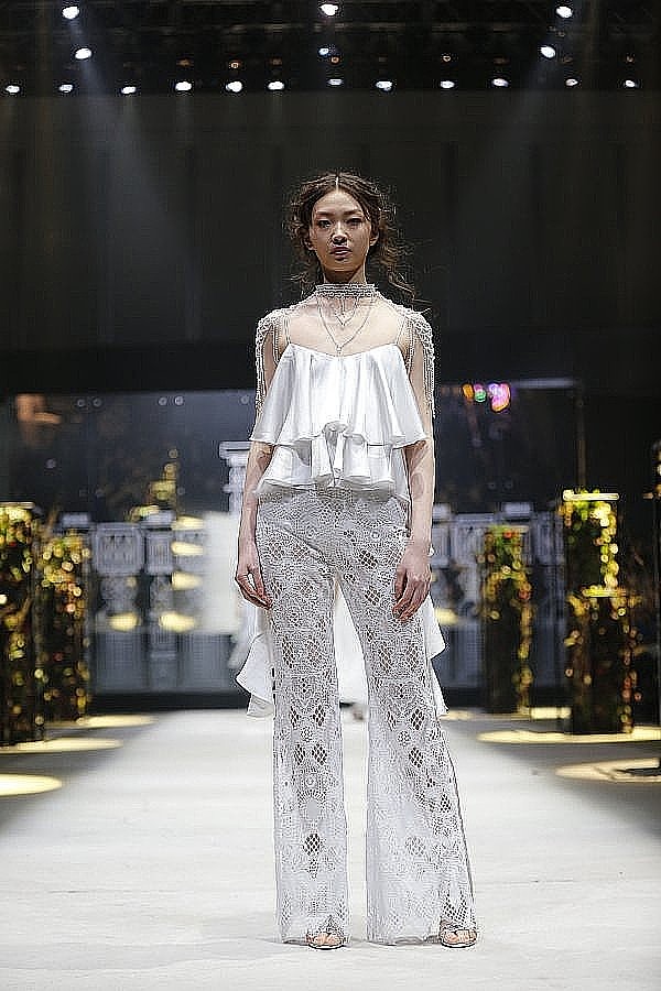 在層疊的薄紗和真絲之上呈現(xiàn)質(zhì)感,