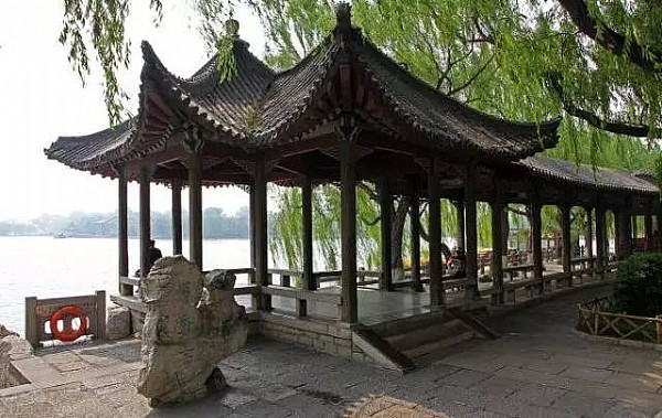 亭身空透,亭下四周有木制坐欄,亭內(nèi)有石雕蓮花桌凳,以供游人休憩。亭上二層檐下,懸有乾隆皇帝書歷下亭紅底金字匾額。整個島上綠柳環(huán)合,花木扶疏,亭臺軒廊錯落有致,修竹芳卉點綴其間。春天,修竹婆娑,翠柳籠煙;秋日,湖水蕩漾,荷花溢香,涼風徐吹,令人心爽,被稱作“歷下秋風”,為古時歷城八景之一。
