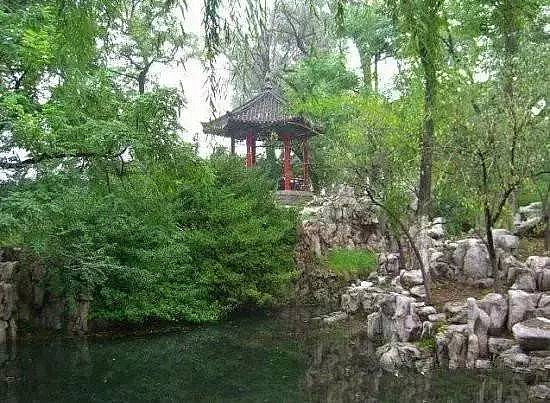 月下亭,在大明湖北岸,北極閣西側(cè)。亭子立在水池中央,建于1937年,形為六角尖頂,白柱青瓦,飾以彩繪,小巧玲瓏,典雅別致。池中蓄錦魚,植王蓮,池周自然石駁岸,頑石臥波。東側(cè)緊靠北極閣處為假山,巨石陡立峭拔,嶙峋崢嶸。近植翠竹,颯颯有韻。