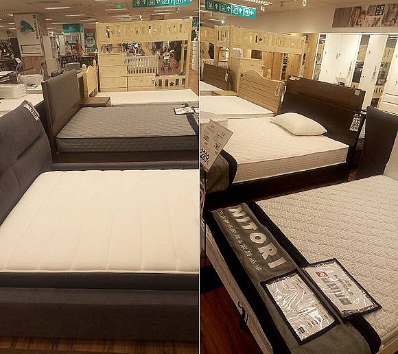 這一層更像是一個家具大賣場,這些餐桌、沙發、床只是整齊地擺放在一起供人挑選而已,不過床墊、沙發是真的很舒服、很有彈力。
