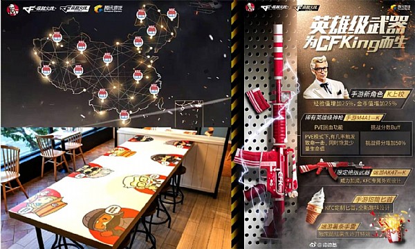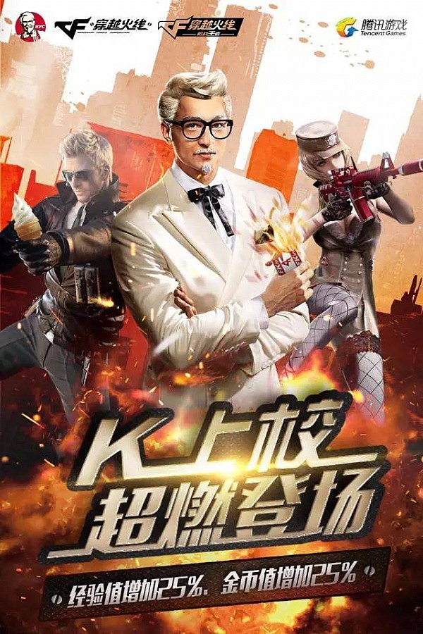 肯德基將自身最著名的標識化身“K上校”,與CF角色一起并肩作戰(zhàn),同時推出附帶CF定制武器內容的“CF火線明星餐”。而在CF游戲內部,這些專屬定制武器無一例外都印上了肯德基的影子,例如M4A1-K、AK47-K、薯條手雷、手游甜筒匕首等。