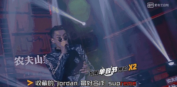 Air Jordan系列是《中國有嘻哈》期間陪伴吳亦凡時間最長的系列(目前為止),在1 vs 1戰、導師選擇甚至是贊助節目的麥當勞廣告片中。