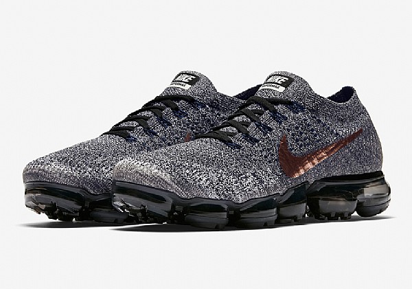 NIKE AIR VAPORMAX EXPLORER DARK 發售時間:8月3日 售價:190美元 耐克再次帶來VAPORMAX全新配色,鞋身由奧利奧餅干似的黑色飛織材質構成,銅色的“對勾”標志位于鞋側,鞋帶與鞋跟處還點綴有藍色細節,鞋底則由半透明的霧黑色打造。