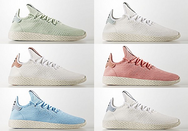 PHARRELL WILLIAMS X ADIDAS TENNIS HU 發售時間:8月3日 售價:130美元 PHARRELL與阿迪達斯推出聯名款鞋履,鞋身由Primeknit編織材質打造。其中三款分別為薄荷綠、淡粉、亮藍色;剩下三款以白色為主色調,但在鞋舌與鞋跟處分別搭配了淺灰、深灰、深褐色,以形成反差。