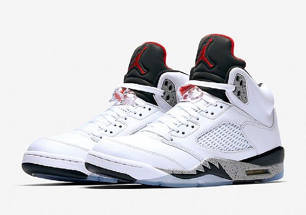 AIR JORDAN 5 WHITE/CEMENT 發售時間:8月5日 售價:190美元 斯派克?李通過電視廣告推廣了Jordan品牌,使其成為鞋迷愿意收藏的鞋履。此次推出的AIR JORDAN 5沿襲了原本的白水泥風格,白色的鞋面搭配黑、紅細節,灰色中底點綴黑色潑墨元素。