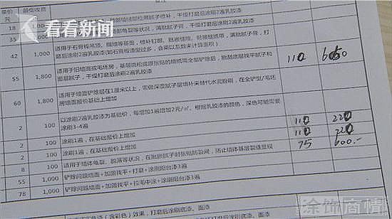 由于當(dāng)時(shí)相關(guān)清單都沒(méi)有給到曹先生,對(duì)于這種說(shuō)法,看看新聞Knews記者只能來(lái)到立邦總部核實(shí),立邦刷新服務(wù)商項(xiàng)目負(fù)責(zé)人郭盛成拿來(lái)了材料收費(fèi)單,只見(jiàn)這份手寫(xiě)清單上多處涂涂畫(huà)畫(huà),但明確寫(xiě)著內(nèi)墻面積112平米,不包含頂。對(duì)此,郭先生說(shuō),簽合同時(shí)候客戶認(rèn)可這個(gè)面積,如果多量平方數(shù)會(huì)按照結(jié)算時(shí)實(shí)際測(cè)量計(jì)算。他甚至說(shuō),還是他們主動(dòng)發(fā)現(xiàn)面積不對(duì)的,至于為何清單不給客戶,工人施工水平為何不佳,他都說(shuō)不清楚。只是強(qiáng)調(diào)每一步都有竣工驗(yàn)收單,客戶也簽字了。