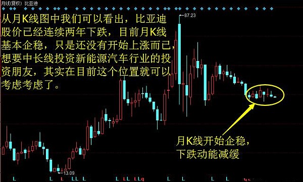 從月K線圖中我們可以看出,比亞迪股價(jià)已經(jīng)連續(xù)兩年下跌,目前月K線基本企穩(wěn),只是還沒(méi)有開(kāi)始上漲而已,想要中長(zhǎng)線投資新能源汽車行業(yè)的投資朋友,其實(shí)在目前這個(gè)位置就可以考慮考慮了。