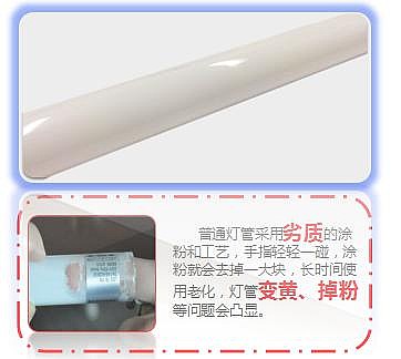 LED\u00A0T8燈管亮易感應燈的涂層材料選用水溶性有機材料,無污染,極限130℃高溫條件下,涂層不黃變、不脫落。并且采用一次性涂粉工藝技術(shù),管壁附著力高,不易刮傷、不掉粉。在材質(zhì)方面,采用優(yōu)質(zhì)玻璃材質(zhì),經(jīng)久耐用,透光率高達90%。并且擁有良好光漫性能,確保出光均勻柔和、無眩光。